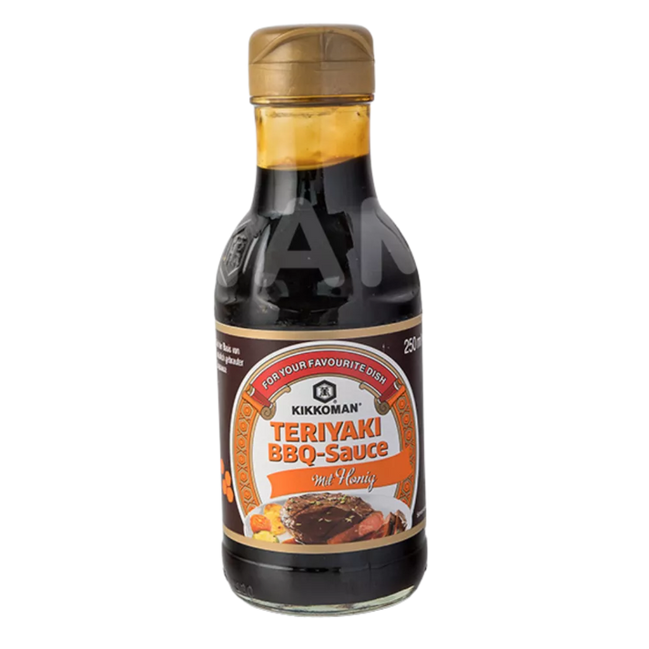 Teriyaki stammt aus Japan und bezeichnet eine Kochtechnik, bei der Zutaten mit einer würzig-süßen Sauce mariniert und dann gegrillt oder gebraten werden. Die KIKKOMAN Teriyaki BBQ Sauce mit Honig bringt diesen einzigartigen Geschmack in deine Küche.